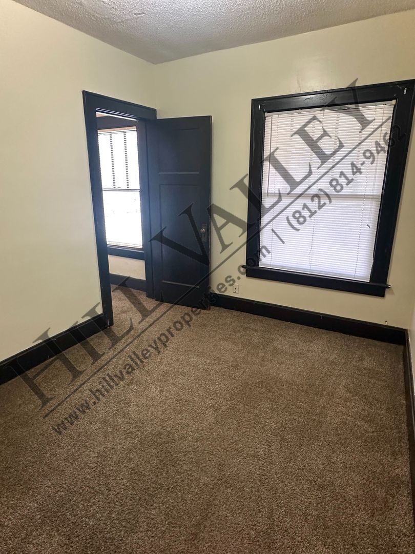 Situated less than a mile from ISU's campus and the local restaurants, shops, and venues of downtown Terre Haute, this two bedroom apartment offers a practical and efficient layout on the upper level. Enter the inviting living room, where a ceiling fan keeps air moving and double doors open out to a shared balcony. From there, the formal dining room offers a dedicated space for meals or a potential study/work area. The kitchen is generously sized, giving you plenty of room to move around, and it comes ready with a stove and refrigerator. Additionally, both bedrooms come with spacious closets to store your belongings without cluttering up your living space. The best part of all? All utilities are included, so all you pay is the rent!