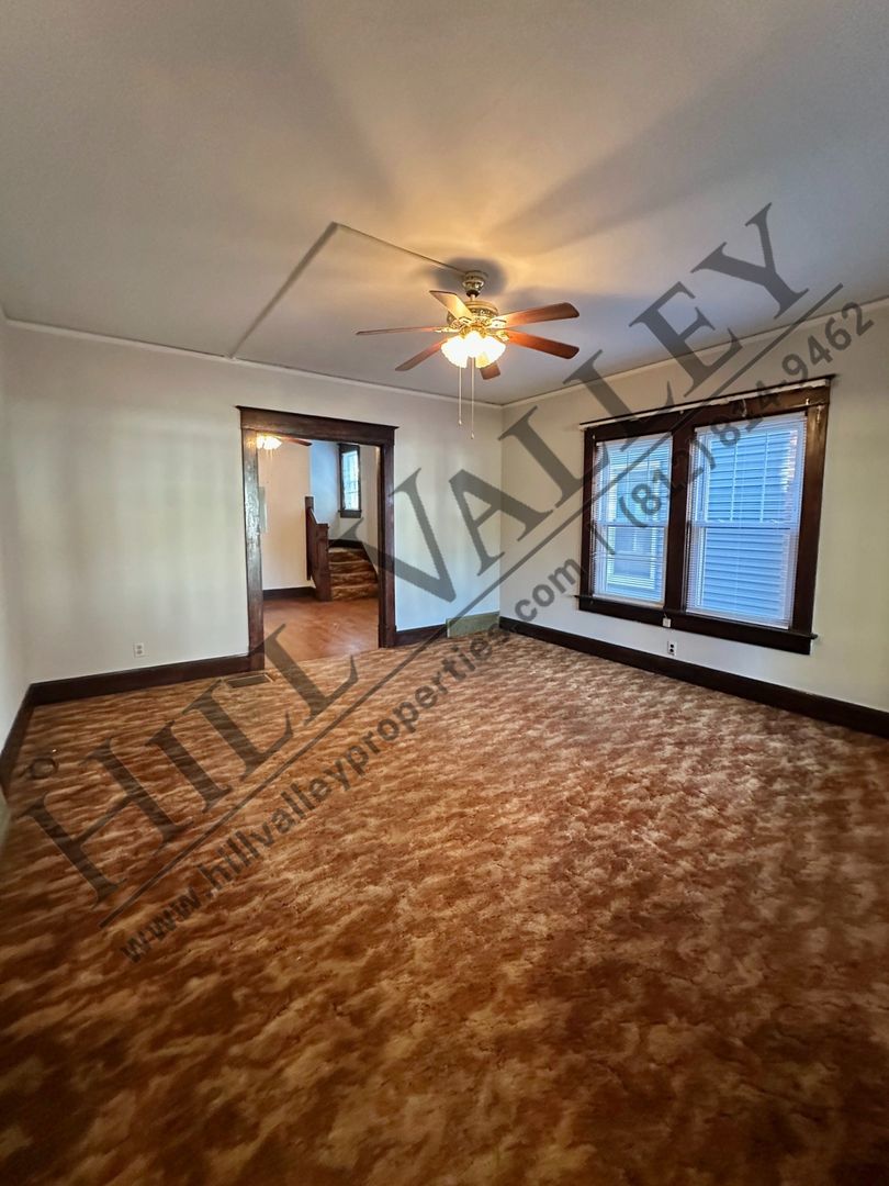 Offering over 1,400 sq ft of living space across two stories, this 3 bedroom, 1.5 bathroom unit delivers a thoughtful layout with room to spread out! The main level includes a large living room with an enclosed sunroom, a dedicated dining room, a half bathroom, a spacious kitchen, and a charming little back porch enclosed with lattice. All three bedrooms are located upstairs, along with the full bathroom. One of the bedrooms opens to a fully enclosed balcony, perfect for relaxing, reading, or just enjoying natural light without going outside. Laundry hookups are located in the basement, and the apartment is equipped with central air conditioning.