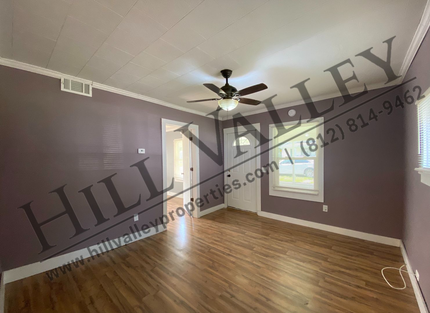 Welcome to this cute and quaint two bedroom home located on the desirable east side of town. Equipped with ceiling fans in the living spaces and updated laminate flooring throughout, this charming residence combines modern touches with a cozy, comfortable atmosphere. The kitchen offers space for a small dining table and is well-appointed with a stove and refrigerator. The primary bedroom stands out with its spacious walk-in closet, and laundry hook ups can be found within the second bedroom's closet. One of the highlights of this property is the screened-in patio, perfect for relaxing and enjoying the outdoors, as well as the single car detached garage situated behind the home.
